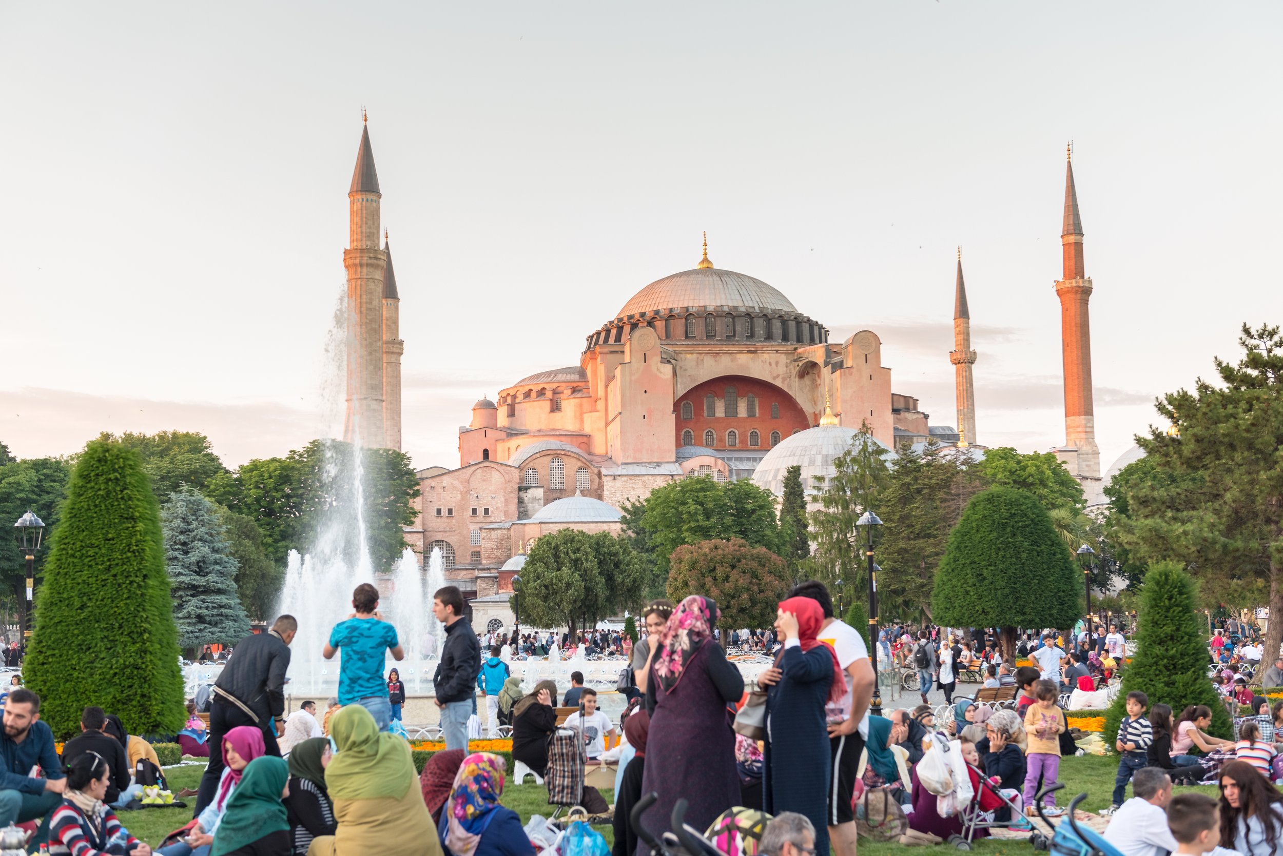 People wait to break the fast in Sultan Ahmet Park, Istanbut.